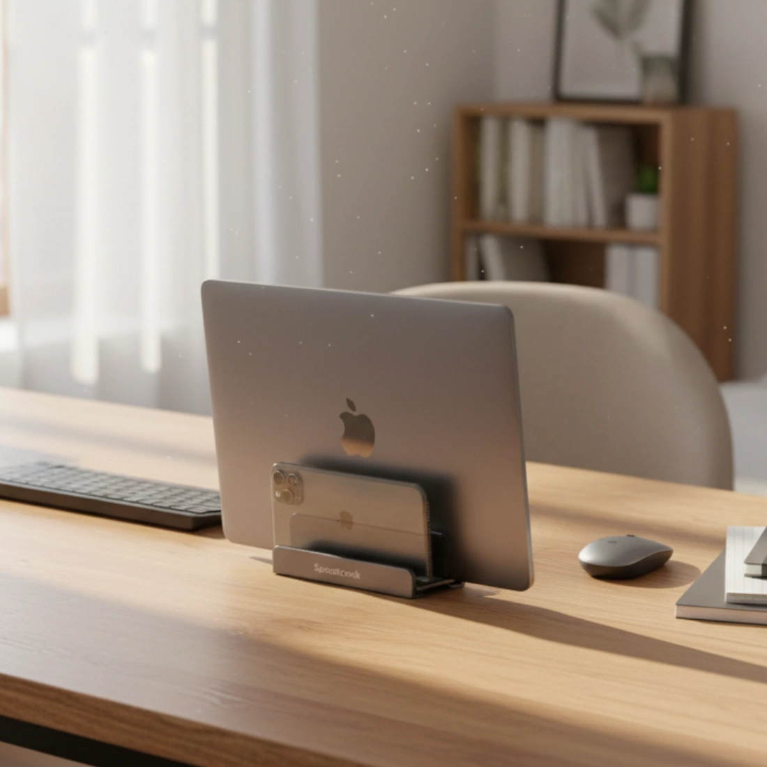 Ganz gleich, ob Sie einen dicken Laptop oder einen schlanken Mac haben, der Ständer von Spacetronik ist in der Griffbreite von 2 bis 4,5 cm verstellbar. Darüber hinaus es gibt 2 Plätze für Mobiltelefone (jedes Modell ist geeignet wird passen)
