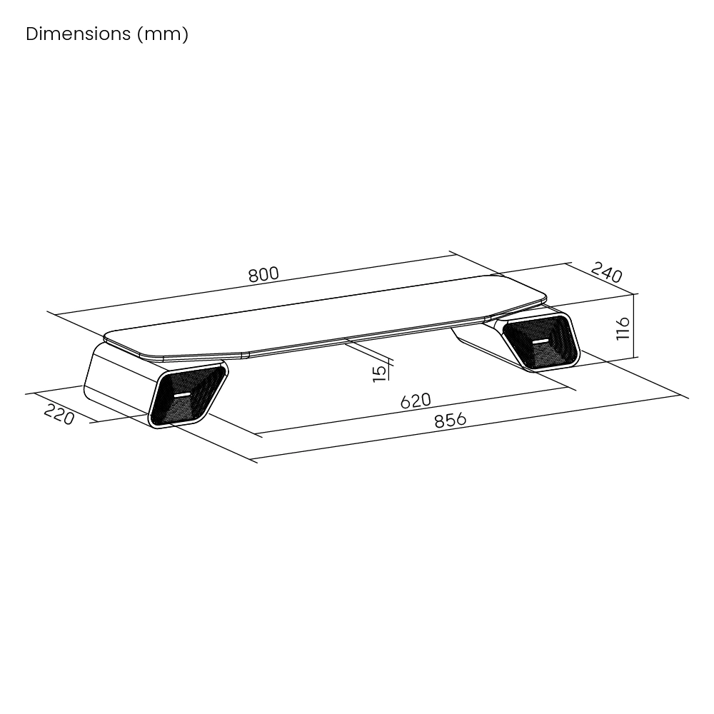 Abmessungen: 856×240×116 mm (33,7"×9,4"×4,6")