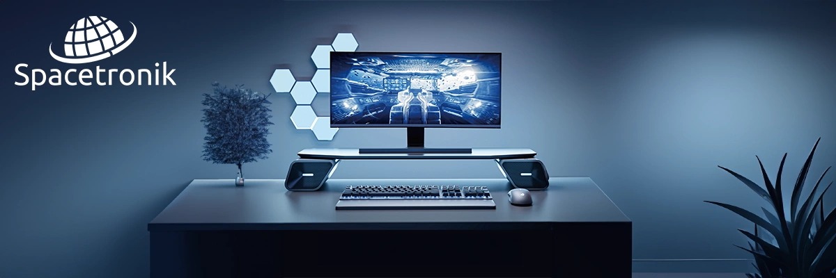 Ein geordneter Arbeitsplatz hat einen erheblichen Einfluss auf die Qualität unserer Arbeit. Er erhöht nicht nur die Konzentrationsfähigkeit, sondern verringert auch das Unfallrisiko. Das Monitor-Lautsprecherstativ Spacetronik SPP-142B kann Ihnen dabei helfen. Dank der intelligenten Kombination von Monitorablage und Lautsprechern gewinnen Sie viel Freiraum auf Ihrem Schreibtisch.