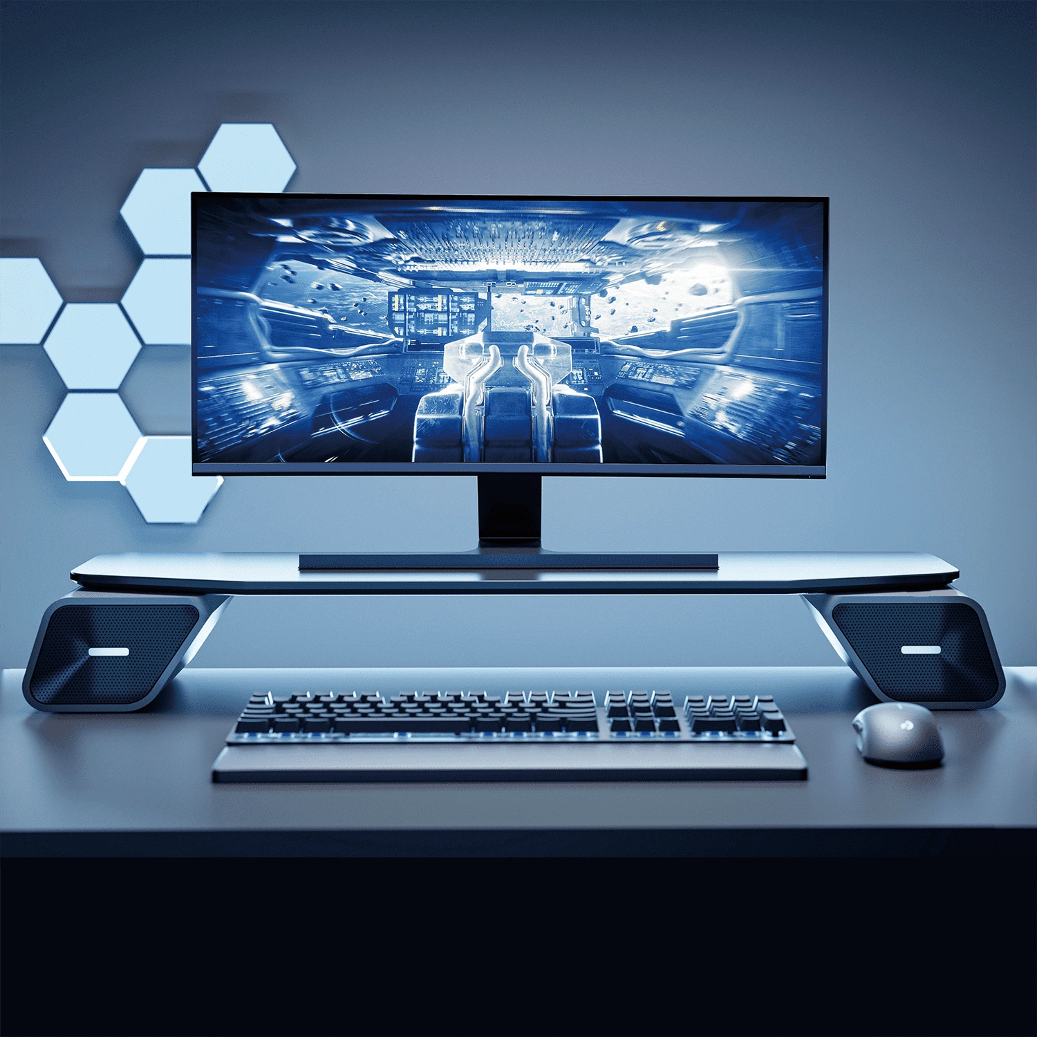 Minimalismus ist heutzutage die Regel in der Innenarchitektur. Je weniger, desto besser. Das multifunktionale Monitorregal passt perfekt in diesen Trend. Es bietet Ihnen einen Monitorständer, Lautsprecher mit Kopfhörereingang und freien Platz. Sie können Ihre Lautsprecher und Ihren Monitorständer durch ein einziges Gerät ersetzen. So haben Sie weniger Gegenstände auf Ihrem Schreibtisch. Die Klarheit auf Ihrem Schreibtisch wirkt sich nicht nur positiv auf die Ästhetik Ihres Raumes aus, sondern auch auf Ihre Produktivität.