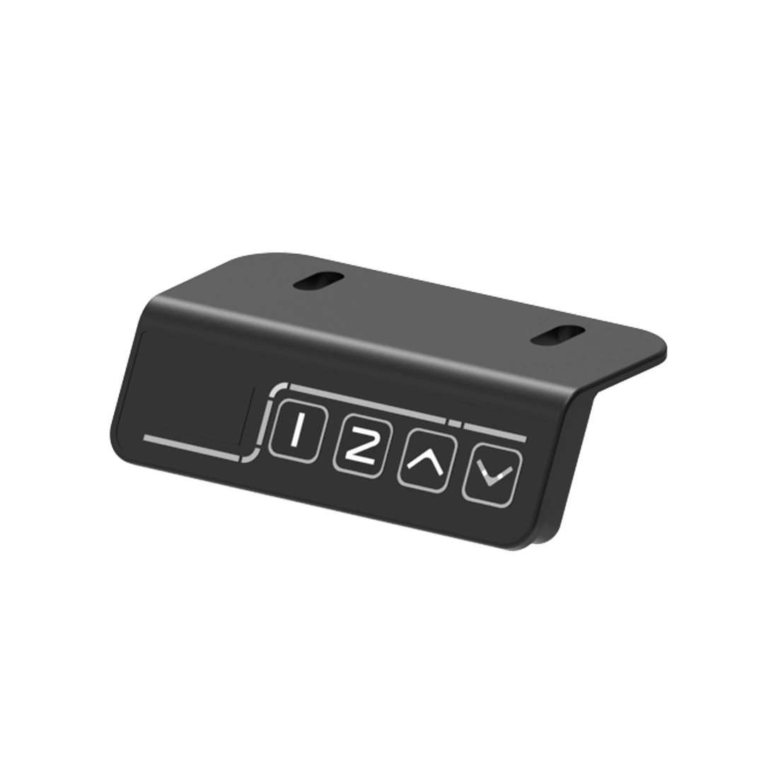 Mit den Auf- und Ab-Tasten können Sie ganz einfach die ideale Höhe einstellen. Dank der vier programmierbaren Tasten können Sie Ihre Lieblingspositionen speichern und mit einem einzigen Klick zu jeder dieser Positionen zurückkehren, zum Beispiel wenn Sie im Stehen arbeiten möchten. Die aktuelle Höhe des ergonomischen Tisches wird auf dem Display angezeigt.