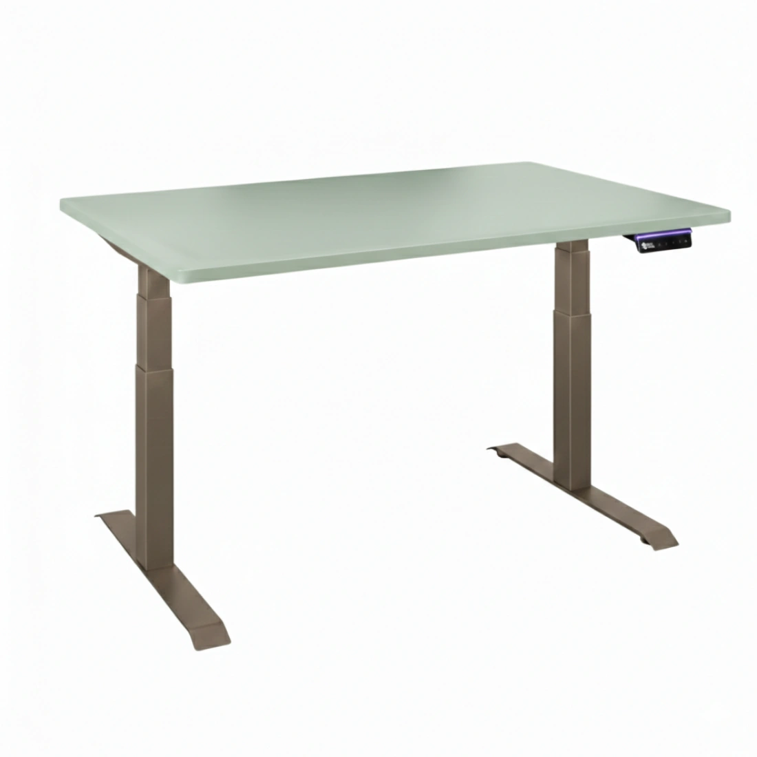 Dank des Einsatzes von zwei Motoren ermöglicht das elektrische Gestell ein sanftes Anheben und Absenken des Tisches mit einer Belastung von bis zu 140 Kilogramm. Die hochwertigen Motoren verändern die Position des Tisches mit einer Geschwindigkeit von bis zu 38 mm/s, wodurch die Tischhöhe schnell und mühelos eingestellt werden kann.