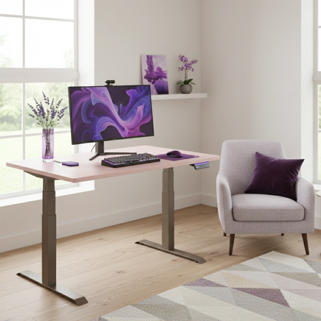 Dank des Einsatzes von zwei Motoren ermöglicht das elektrische Gestell ein sanftes Anheben und Absenken des Tisches mit einer Belastung von bis zu 140 Kilogramm. Die hochwertigen Motoren verändern die Position des Tisches mit einer Geschwindigkeit von bis zu 38 mm/s, wodurch die Tischhöhe schnell und mühelos eingestellt werden kann.