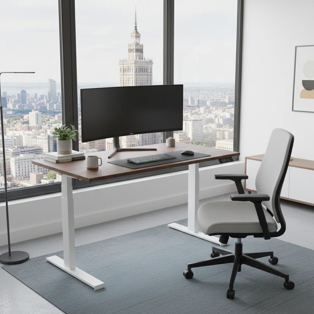 Ein gut durchdachtes Gestell des elektrischen Schreibtisches garantiert Stabilität auch in der größten Höhe. Ein höhenverstellbarer Schreibtisch ermöglicht das so genannte hybride Arbeiten - wir können abwechselnd im Stehen oder Sitzen arbeiten oder lernen. Die Höhenverstellung ist ideal, wenn mehrere Personen an einem Schreibtisch arbeiten - passen Sie die Höhe der Tischplatte an die Körpergröße der einzelnen Benutzer an. Der elektrische Schreibtisch ist ein Möbelstück, das sich an Sie anpasst!