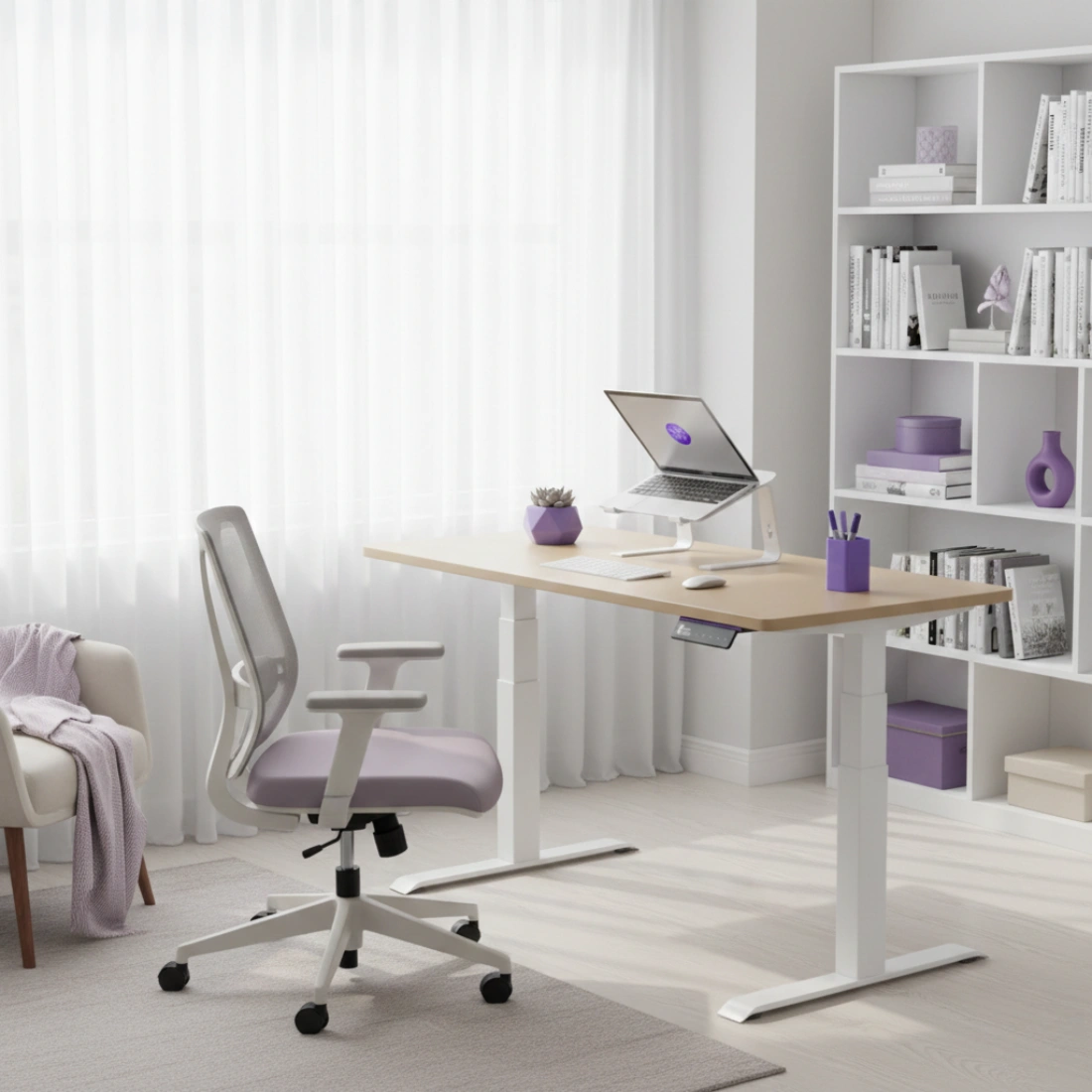 Dzięki wykorzystaniu 3 segmentów podnoszących stelaż, jest on stabilny i pozwala podnosić biurko na wysokość aż 127cm. Dzięki temu można pracować komfortowo zarówno w pozycji stojącej jak i siedzącej. Stelaż posiada prostokątny kształty kolumn, przez co sprawdzi się w każdych wnętrzach, również w tych nowoczesnych.
