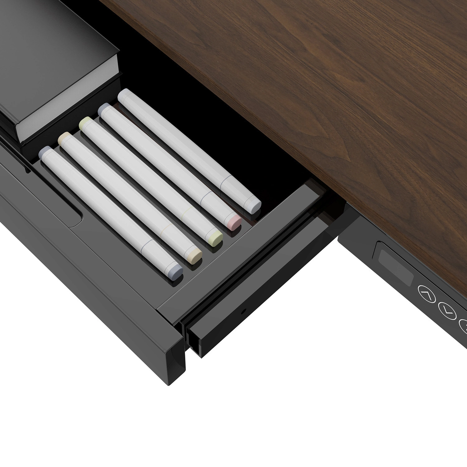 • Schaffen Sie sich einen ergonomischen Arbeitsplatz. Ein kostengünstiger Spacetronik Astrid-Schreibtisch mit elektrischer Höhenverstellung von 720-1220 mm, an dem Sie im Stehen oder Sitzen arbeiten können. Schublade. Dunkle Platte 120 x 60 cm. Schwarzes Ge