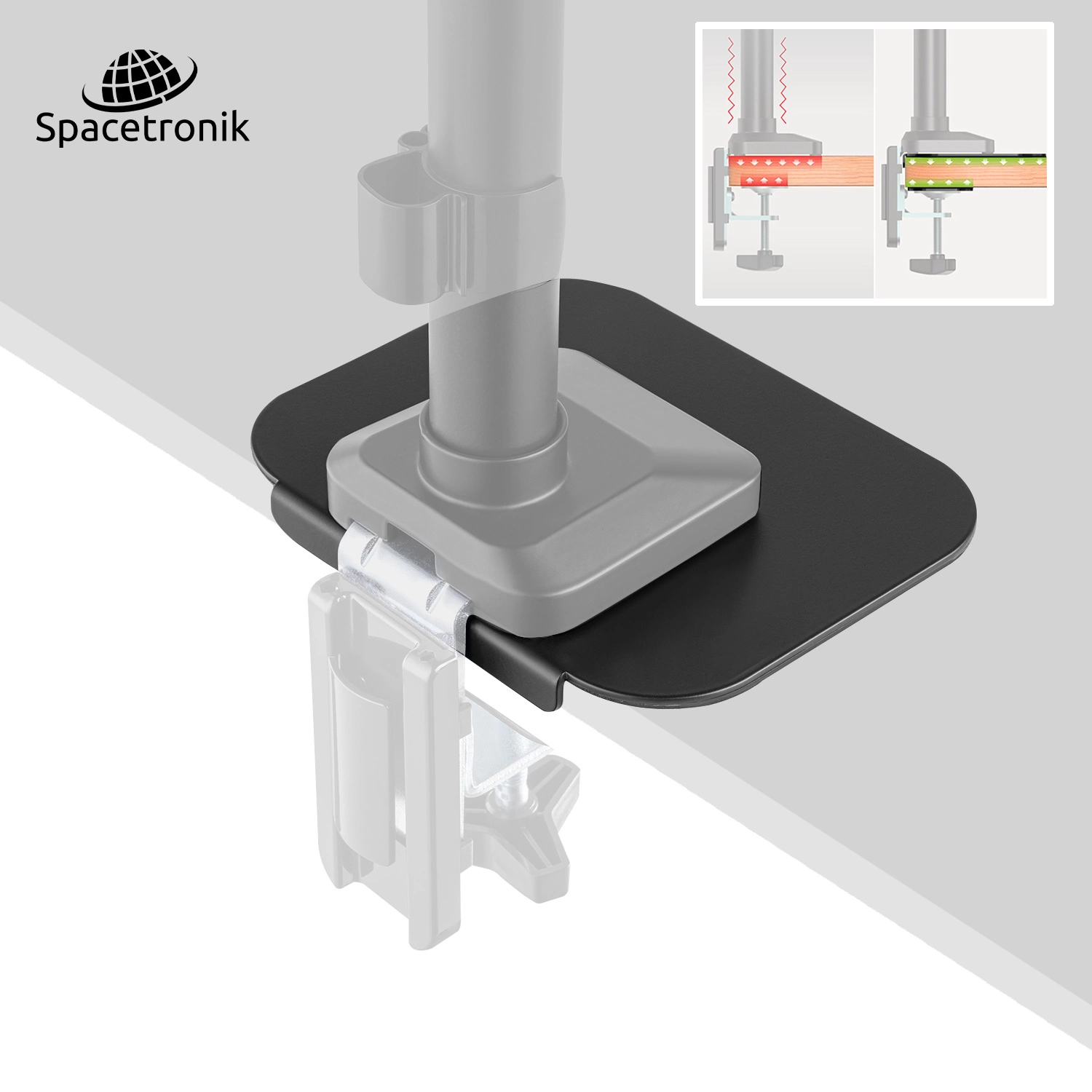 Die Stabilisierungsplatte für Monitorhalter Modell SPA-010 zeichnet sich durch ihre Vielseitigkeit aus. Das Design wurde so konzipiert, dass es für jede Art von Halterung geeignet ist – sowohl für die Klemme als auch für die Durchgangsmontage. Die Schutzplatte ist einfach zu installieren, was den Montageprozess des Monitorhalters erheblich vereinfacht.