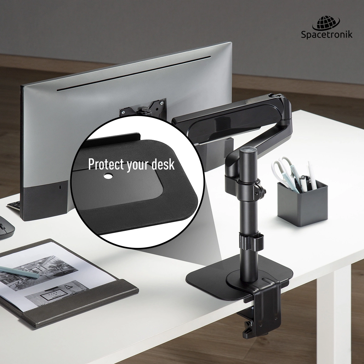 Die Silikonauflage der SPA-010 stabilisiert nicht nur den Griff, sondern schützt auch die Arbeitsplatte vor Kratzern und Beschädigungen. Verteilt das Gewicht des Griffs und des Monitors gleichmäßig, wodurch das Risiko einer Beschädigung der Arbeitsfläche minimiert wird.
