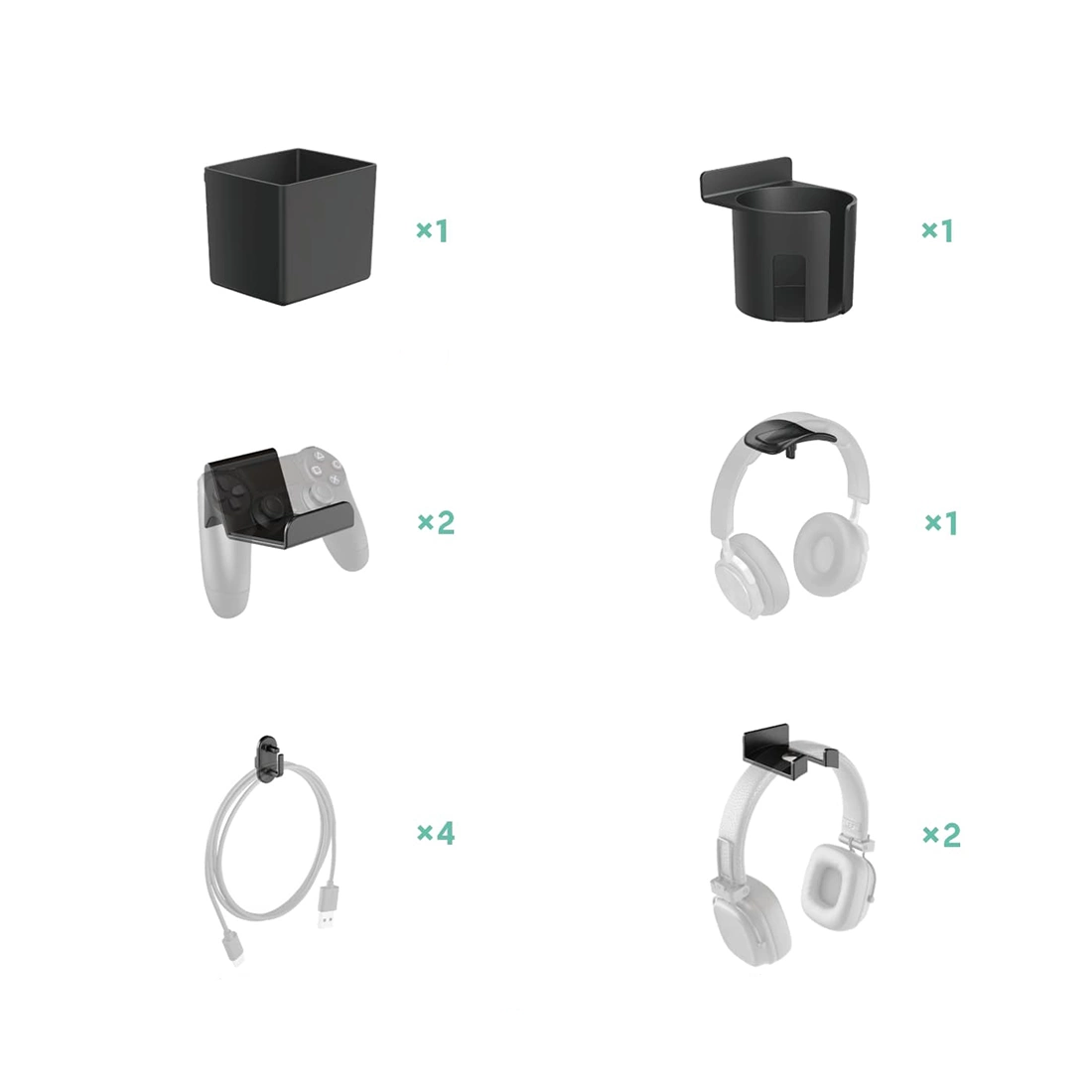 Zusätzlich zu den 4 modularen perforierten Teilen enthält das Set Schreibwarenhalter, Becherhalter, Blockhalter, zwei Arten von Kopfhörerhaltern und Kabelhalter. Es handelt sich um einen kompletten Schreibtischhalter, mit dem Sie Ihr Schreibtischzubehör leicht organisieren können. Sie können selbst entscheiden, wo Sie die einzelnen Halterungen anbringen und wie Sie sie verwenden möchten.
