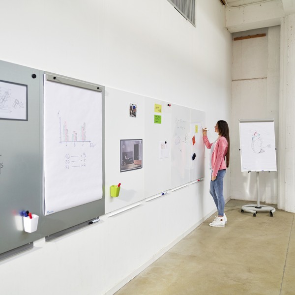 Ein Halter, mit dem ein Papierblock auf nicht störende Weise an einem Whiteboard befestigt werden kann. Mit seiner Hilfe können Papierblätter aufgehängt und leicht ausgetauscht werden. Ein nützliches Zubehör für alle, die ihre Gedanken lieber auf Papier präsentieren und für spätere Überlegungen aufbewahren. 20 Blatt Papier im Lieferumfang enthalten.