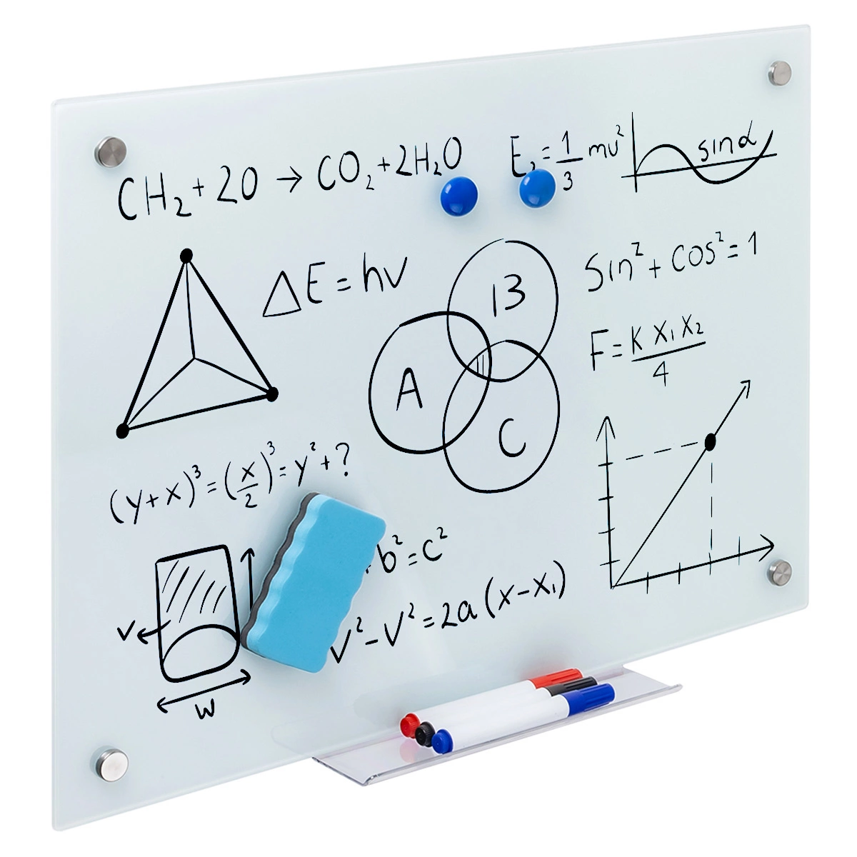 Das magnetische Whiteboard SPB-204 von Spacetronik ist jedoch nicht nur im Büro hilfreich. Es funktioniert genauso gut in der Schule wie bei Ihnen zu Hause. Es ist einfach überall dort eine gute Lösung, wo es hilfreich sein kann, seine Gedanken aufzuschreiben. Auf der 60×90 cm großen Glasfläche können Sie alle Fakten, die Sie brauchen, problemlos aufschreiben. Bei Bedarf können Sie sie mit einem einfachen Tuch oder dem mitgelieferten Schwamm (kostenlos) einfach wegwischen. Und mit den Magneten können Sie alles, was Sie wollen, einfach an der Tafel befestigen. Seien es Dokumente, Lehrmittel oder einfach Postkarten aus dem Urlaub