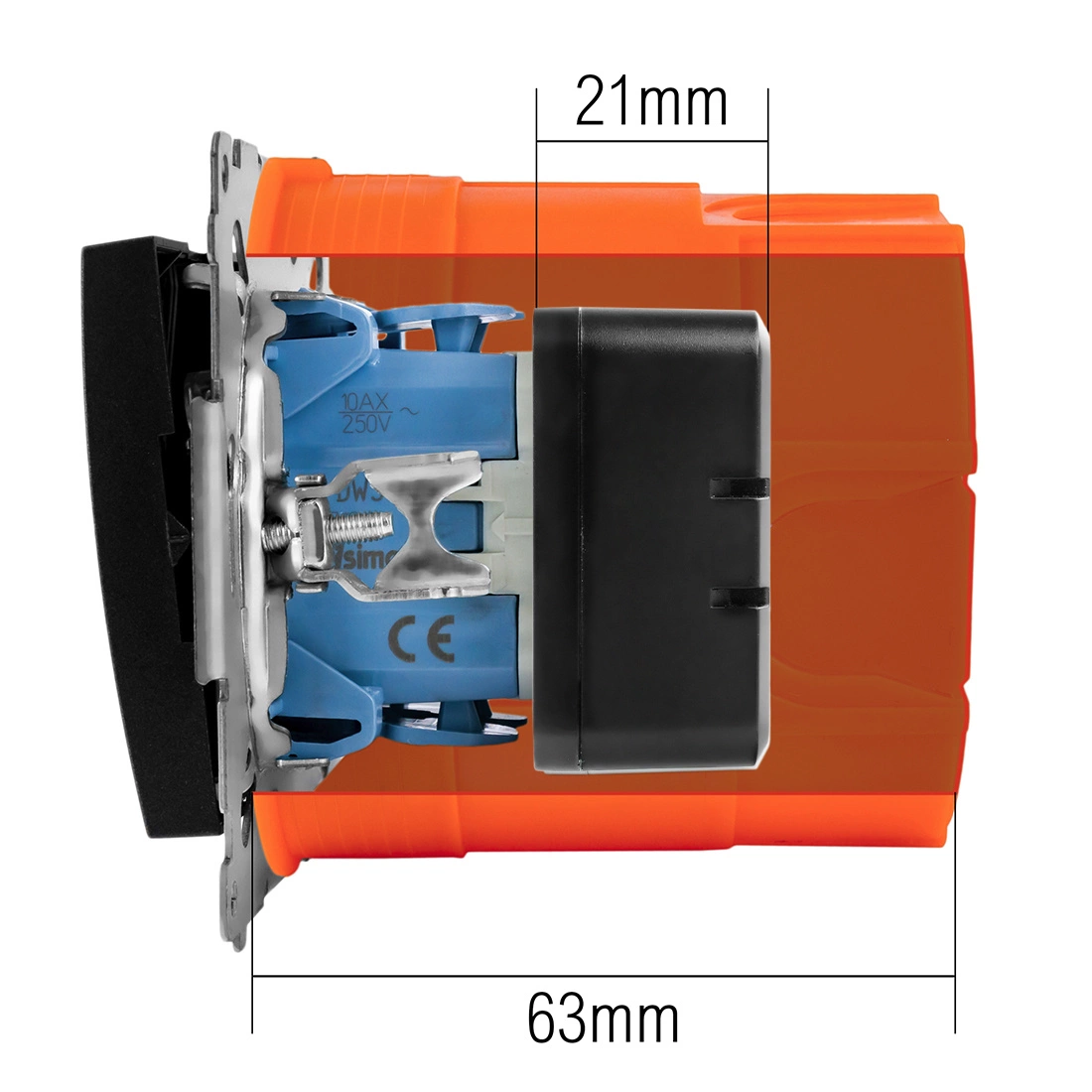 Schalter Der WiFi-Lichtschalter hat kleine Abmessungen von 42 x 42 x 21 mm. Dadurch passt er leicht in in jede Dose und ermöglicht den Einbau eines klassischen Schalters. Diese Diese Lösung ermöglicht die Aufrüstung des Hauses auf eine Smart-Version ohne größere Eingriffe in die in die bestehende Installation.