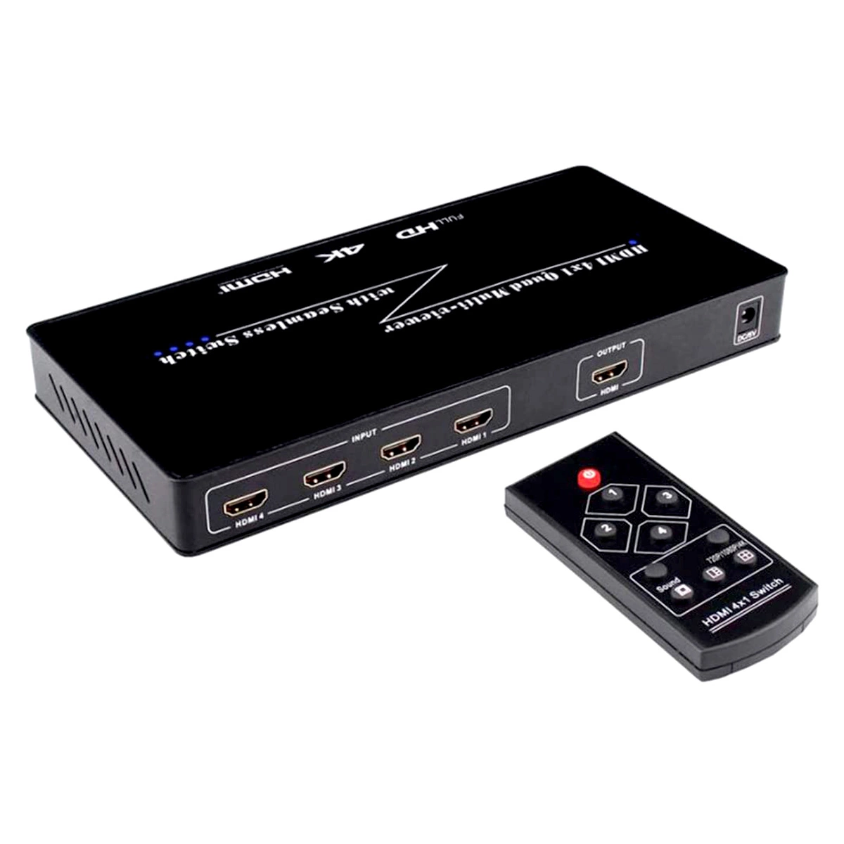 Das Gerät ermöglicht den Anschluss von vier Eingangsgeräten über HDMI und die Anzeige auf einem einzigen Receiver