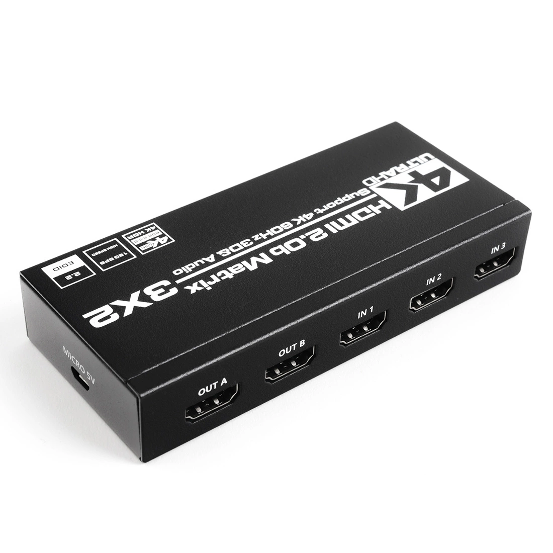 Die 3x2 HDMI Matrix kann 3 HD-Quellen an 2 HD-Displays anschließen, zusätzlich verfügt das Gerät über einen Toslink- oder Stereo-Kopfhörerausgang. Die Matrix ermöglicht das einfache Umschalten oder Splitten von zwei HDMI-Geräten auf zwei HDMI-kompatible Monitore oder Projektoren. Die Ausgänge können eine unabhängige Audioausgabe über einen Stereokopfhörer realisieren. Das Gerät eignet sich ideal für die Steuerung von Rechenzentren, die Informationsverteilung, Präsentationen in Konferenzräumen sowie für Schul- und Ausbildungsumgebungen.
