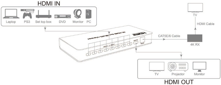 - Unterstützt 8 nahtlose HDMI-Signalumschaltungen