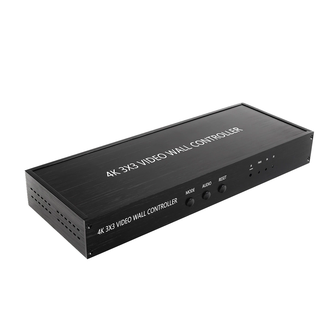 Der 2x2-Videowand-Controller unterstützt 1 HDMI-Eingang und 9 HDMI-Ausgänge. Die Hauptfunktion ist die Aufteilung des gesamten HDMI-Signals in 9 Blöcke und die Zuweisung an 9 Videodisplays (z. B. Projektoren, Fernseher usw.) Der HDMI-Anschluss unterstützt Eingänge mit 4K-Auflösung und zeigt Videos auf 9 Enddisplays in FullHD 1080p-Auflösung an.