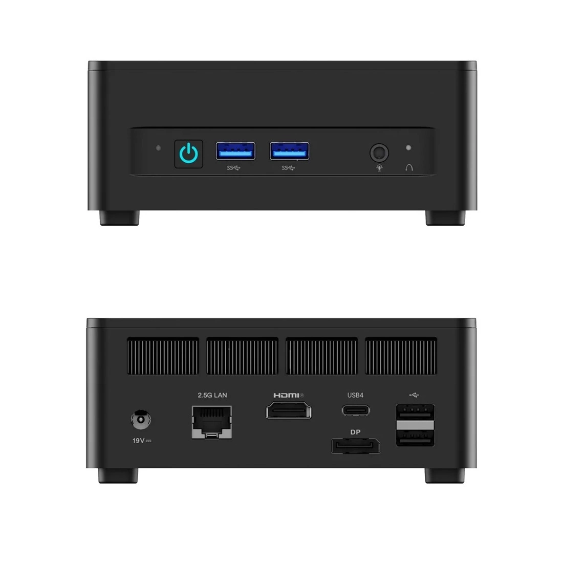 Der Minisforum AtomMan Minicomputer G7 TI ist trotz seiner geringen Größe ein sehr vielseitiges Gerät. Das liegt an der Vielzahl von Anschlüssen, die sich sowohl an der Vorder- als auch an der Rückseite des Geräts befinden. Sie finden dort die folgenden Ein- und Ausgänge:
