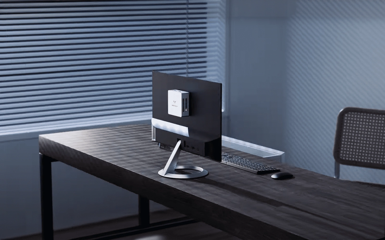 Der Minisforum UN100L Computer ist dank seines einfachen Designs sehr leicht zu bedienen. Sie brauchen nur ein paar Kabel anzuschließen, den Schalter zu betätigen und schon können Sie unbegrenzte Unterhaltung genießen. Der Computer ist energieeffizient, leise im Betrieb und multifunktional. Er unterstützt AV1-Videodekodierung und ist außerdem VESA-kompatibel. Das heißt, Sie können ihn ganz einfach hinter Ihrem Monitor anbringen. Dadurch wird er völlig unsichtbar. Auf diese Weise können Sie einen leistungsstarken Computer nutzen und gleichzeitig das minimalistische Design Ihres Zuhauses beibehalten.