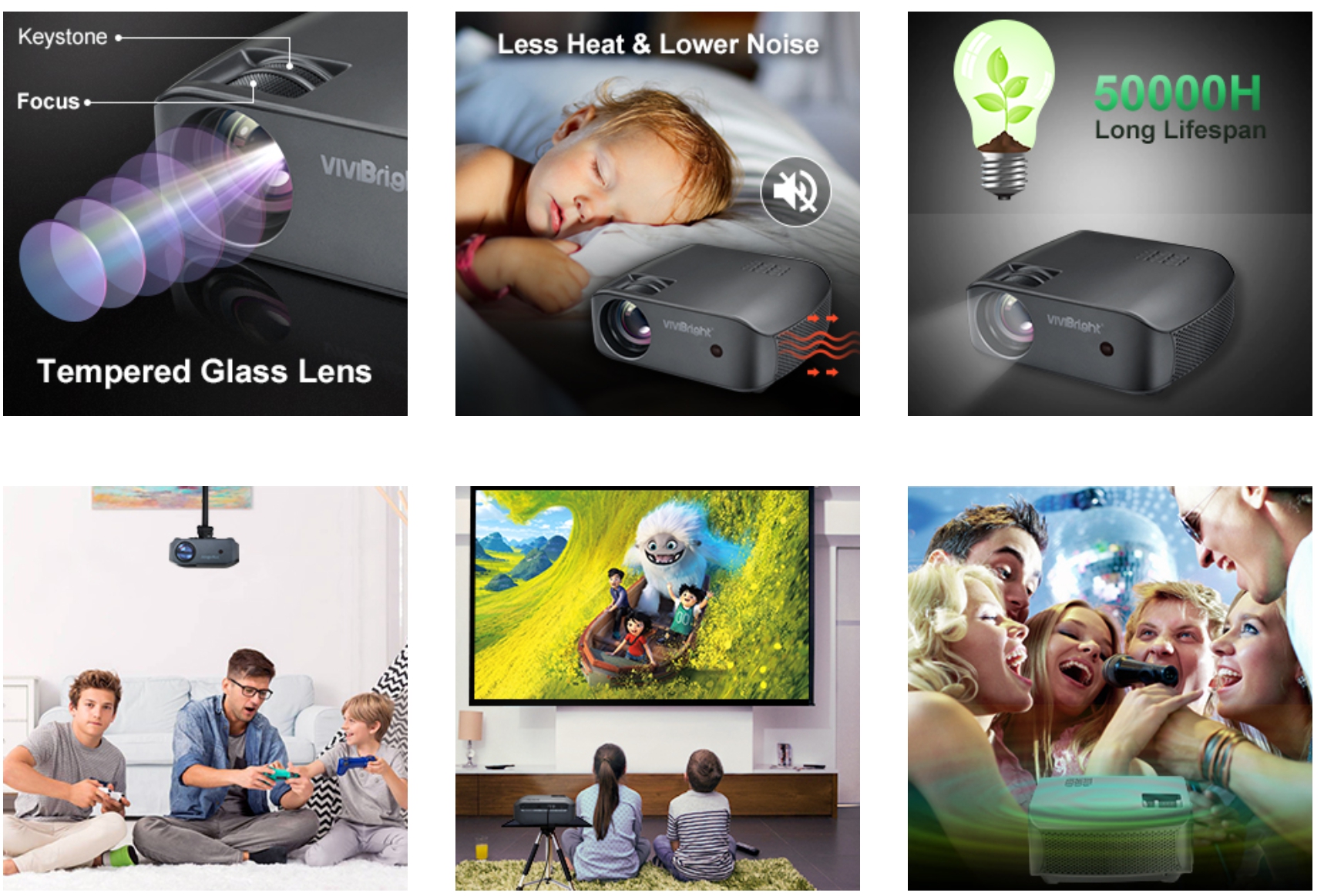 Dank seiner Größe und seines Gewichts ist dieser Projektor sehr tragbar, Sie können ihn überallhin mitnehmen. Das Gehäuse ist so gestaltet, dass die Lampe beim Transport nicht beschädigt wird.