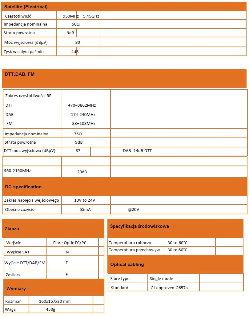 - Vollständig kompatibel mit optischen LNB GI, ODU32 und ODU32 (1550)