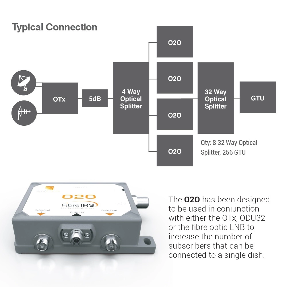 Dieser Konverter ist für die Verwendung in Verbindung mit einem OTx, ODU32 oder Glasfaser-LNB vorgesehen, um die Anzahl der Teilnehmer zu erhöhen, die an eine einzige Antenne angeschlossen werden können.