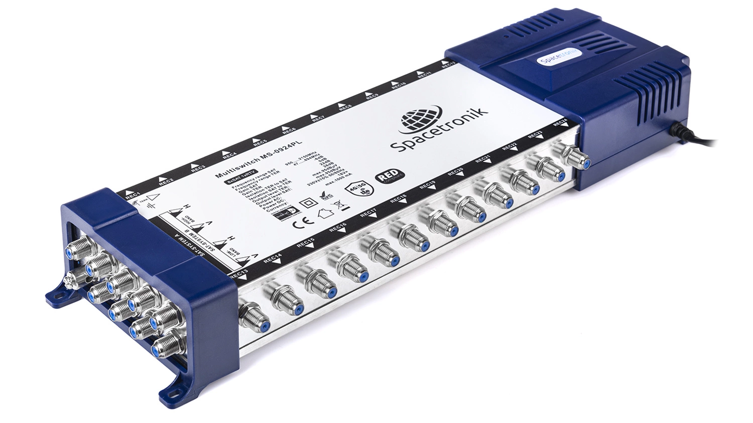 Bei der Herstellung von Spacetronik-Multischaltern haben wir uns entschieden, nicht an ein paar Euro zu sparen. Deshalb haben wir ein stabiles Netzteil verwendet, um einen dauerhaften Betrieb und die Fähigkeit zur Versorgung des DVB-T/T2/FM/R-Pfades (Terminal-Multischalter) zu gewährleisten. Wir haben die hochwertigsten Potentiometer verwendet, die den Multischaltern sehr gute Arbeitsparameter verleihen, die für einen stabilen und dauerhaften Betrieb nützlich sind, und auch ein stabiles Signal und einen schnellen Kanalwechsel in weniger gut gemachten Installationen gewährleisten, z.B. bei schlechter Verkabelung, zu kleiner SAT-Antenne, schlecht gemachter terrestrischer Antennenanlage.