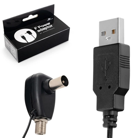 Der Adapter dient zur Stromversorgung über den USB-Anschluss.Der Adapter ist mit einer USB-Buchse und einem F-Stecker ausgestattet (zum Anschluss eines zusätzlichen Gerätes an den USB-Port, z.B. an einen Fernseher, DVB-T-Decoder, etc.)