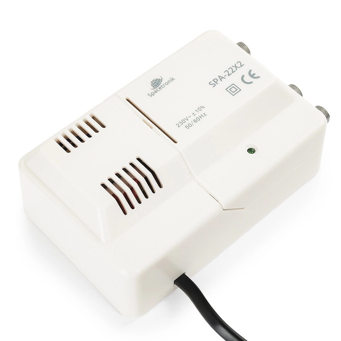 Der lineare Verstärker von Spacetronik bietet 20dB Gewinn für terrestrische TV-Antennenanlagen. Der Verstärker kann an einer F-Buchse direkt an der Antenne oder am Tunerkopf montiert werden. Er benötigt eine 5-12V Spannungsversorgung. Er kann über ein Antennennetzteil oder direkt über den Tuner mit Strom versorgt werden. Die Verstärkung gilt für terrestrische digitale TV-Signale im 5-700MHz-Band.