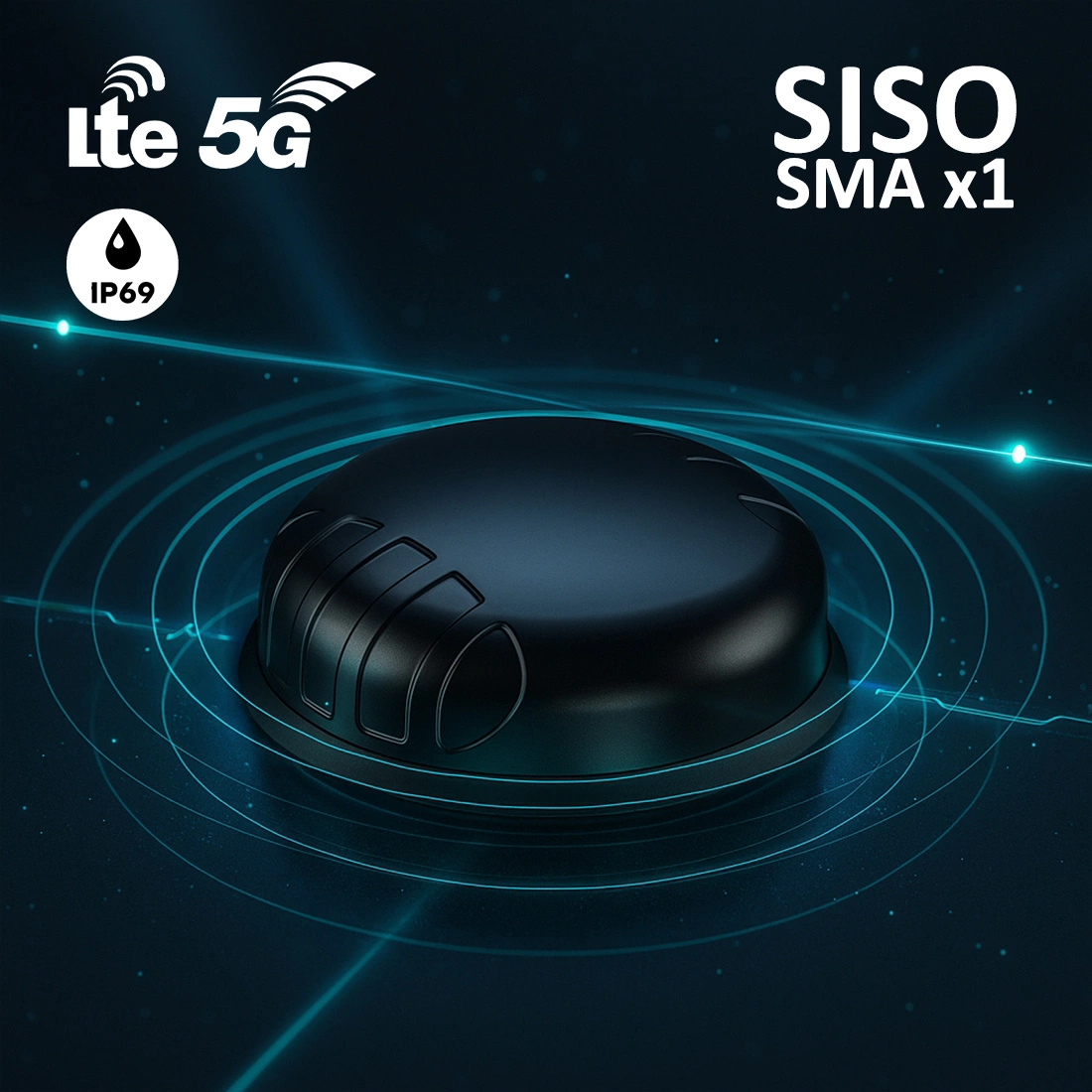 • Robuste Ultrabreitband PUCK-5 5in1 2x2 MIMO LTE, 2x2 Wi-Fi MIMO, GPS/GLONASS Antenne mit einem Frequenzbereich von 698-3800 MHz, Gewinn: LTE 6 dBi, GPS 21 dBi, Wi-Fi 7,5 dB Anwendung: Transport, Smart Metering, Logistiksysteme. Farbe: Schwarz