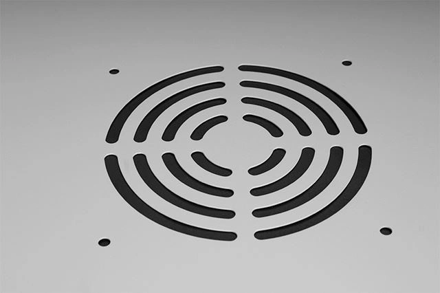 Unten und oben im Schrank ist Platz für einen Lüfter mit den Maßen: 120 mm x 120 mm (Schraubenabstand: 105 mm x 105 mm)