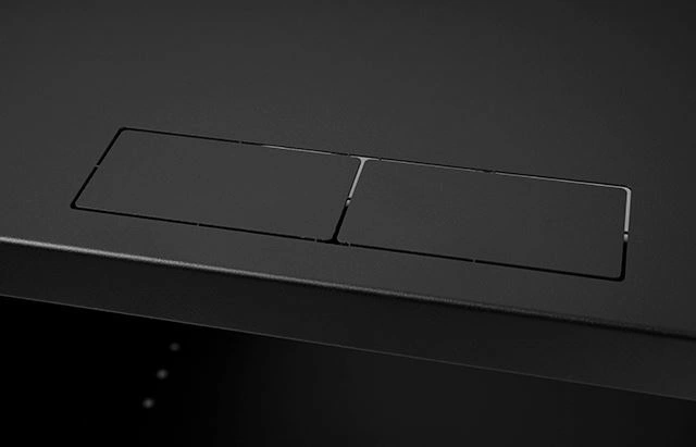 Die professionelle Version des Racks verfügt über drei ausbrechbare Kabeleinführungen an der Unter- und Oberseite des Racks mit den Maßen: 60 mm x 48 mm.