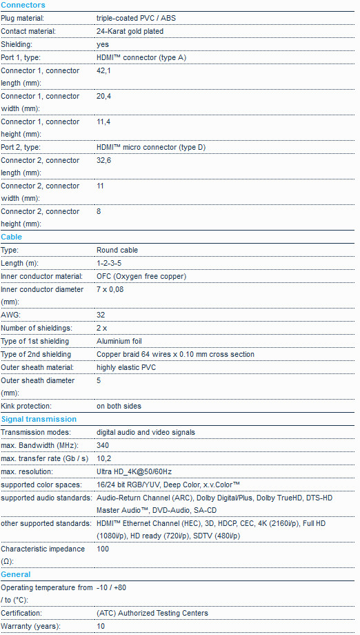 Hochwertiges, dickes, robustes Kabel HDMI - HDMI Mikro für eine klare und hohe Bild- und Tonqualität.