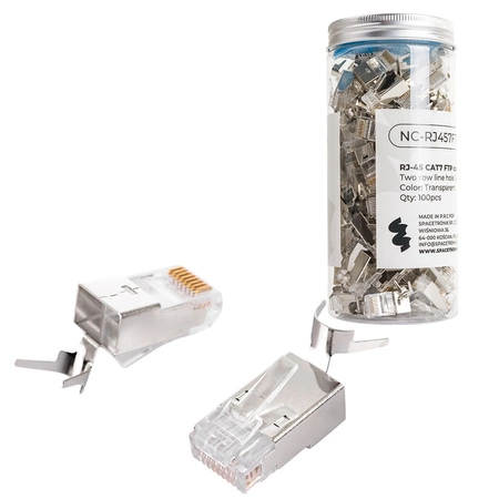 - Hersteller: Spacetronik - Typ: Standard RJ45-Stecker (8P8C) - geeignet für alle Kabeltypen (STP, FTP, UTP) - Kategorie 7 - Abschirmung: FTP - Gehäuse: Metall - Farbe: transparent - Satz mit 100 Stück. - Für Leiter 26-21 AWG - vergoldete Vollkupferstifte (50u Gold) - für beide Arten von Kabeln - für Draht und für Kabel - löcher in zwei Reihen 4/4 (Loch 1,40 mm)