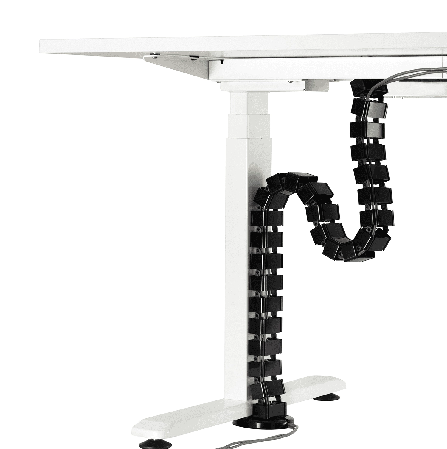 Die Kabelorganisation SPK-188 ist biegbar. Er passt sich an verschiedene Schreibtischhöhen an. Auch an Schreibtische mit Höhenverstellung. Sie müssen ihn nur mit Schrauben am Schreibtisch befestigen. Der Organizer passt sich von selbst der Höhe an, indem er sich biegt oder streckt. Er ist daher ideal für die Verwendung mit elektrischen Schreibtischen.
