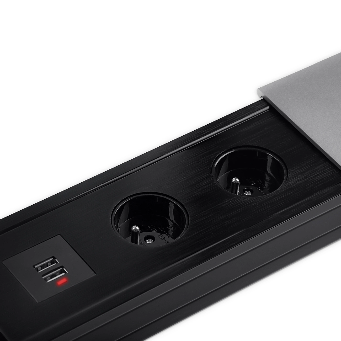 Die Aufsatzsteckdose mit Reißverschluss ist eine innovative Lösung, die Ästhetik und Funktionalität vereint. Sie ist diskret in der Arbeitsplatte verborgen und lässt sich bei Bedarf leicht verschieben. Dank ihrer robusten Konstruktion gewährleistet die ausziehbare Steckdose eine lange Lebensdauer und eine sichere Nutzung. Nach Gebrauch kann die Steckdose einfach abgedeckt werden, so dass sie ordentlich bleibt und vor Staub und Beschädigungen geschützt ist.