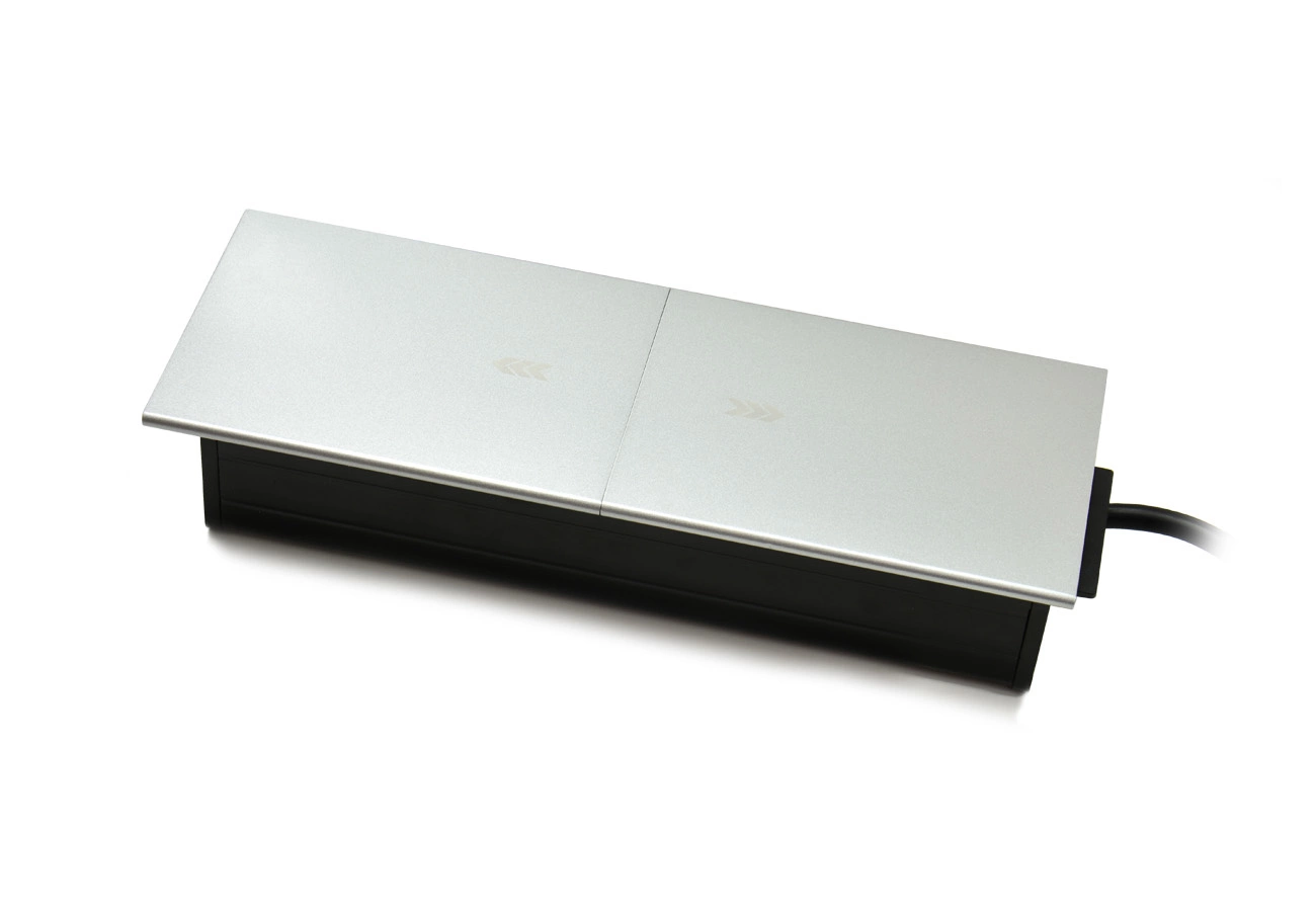 für die Innenmontage in Schreibtischen, Arbeitsplatten und Tischen konzipiert,