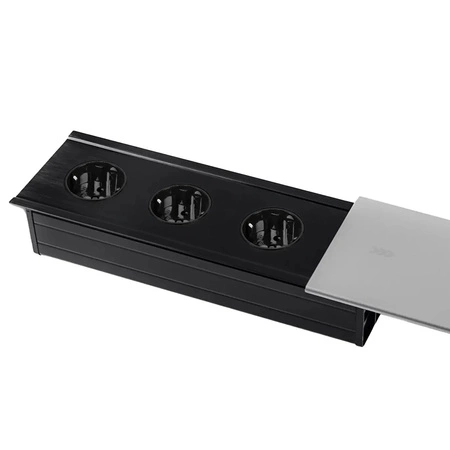 für die Innenmontage in Schreibtischen, Arbeitsplatten und Tischen konzipiert.