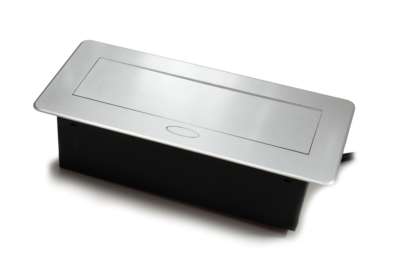 Die Spacetronik mediaport ERGOLINE SPS-D26S ist eine moderne Lösung, die in Geschäften, Ausstellungsräumen, Konferenzräumen, Büros und auch zu Hause eingesetzt wird. Ein Knopfdruck und die Steckdosen öffnen sich sanft. Sie ist aus Aluminium und hochwertigen Komponenten gefertigt. Das Produkt ist für die Innenmontage in Schreibtischen, Arbeitsplatten und Tischen konzipiert, entweder vertikal oder horizontal, und ermöglicht den Zugang zu Steckdosen. Der Mediaport verfügt über 2 Steckdosen 110-250 V (französischer Typ), einen HDMI-Anschluss, eine RJ-45-Ethernet-Buchse der Kategorie 6 und zwei USB-Anschlüsse: 2.0 und 3.0.