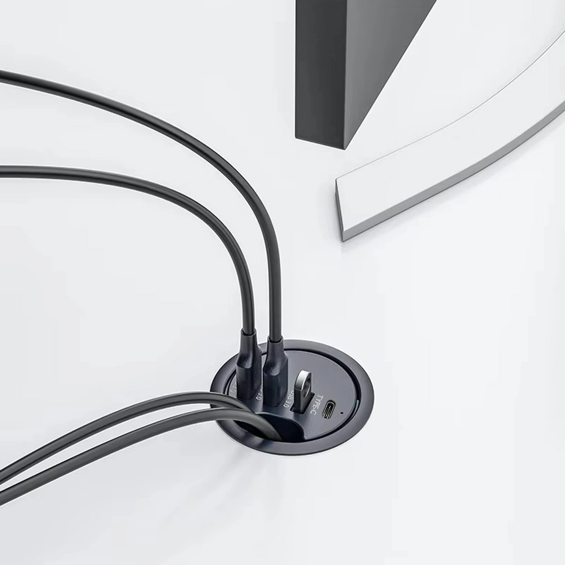 Der Spacetronik ERGOLINE SPS-R1D3B mediaport ist eine moderne Lösung, die in Geschäften, Ausstellungsräumen, Konferenzräumen, Büros und auch zu Hause eingesetzt wird. Er ist aus hochwertigen Komponenten gefertigt. Das Produkt ist für die Inneninstallation in Schreibtischen, Arbeitsplatten und Tischen konzipiert, sowohl vertikal als auch horizontal, und ermöglicht den Zugang zu Steckdosen. Dieser runde Mediaport ist mit einer 110-250-V-Steckdose (Germanium-Typ) und einem dualen USB-Ladegerät, bestehend aus USB-A und USB-C, ausgestattet.