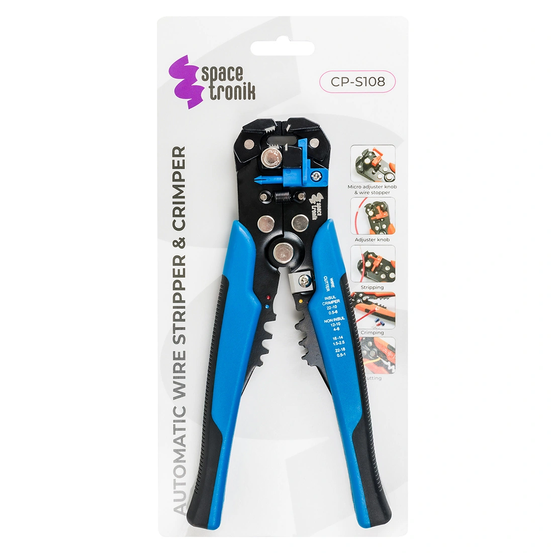 Die Verbinder-Crimpmaschine CP-S107 ist ein Crimpgerät mit rutschfestem Griff für sicheren Halt, zum Verpressen von Kabelschuhen mit einem Umfangsquerschnitt von 1,07 - 1,73 - 1,98 - 3,25 - 3,84 - 4,52 mM (.042" - .068" - .078" - .128" - .151" - .178"). Ideal für RG174, 179, Belden 8218 Steckverbinder, die Verwendung des Gerätes erfordert keinen großen Kraftaufwand und Sie können es problemlos mit einer oder beiden Händen verwenden. Die CP-S107 Kabelpresse ist mit einem Verriegelungsmechanismus ausgestattet, so dass Sie kontrollieren können, wie weit Ihr Gerät geöffnet ist. Die hydraulische Presse ist zum Beispiel für die Überwachung von Klemmen, BNC-Köpfen oder Glasfaserkabeln gedacht. Die blau-schwarze Farbgebung sorgt dabei für ein ansprechendes Design.