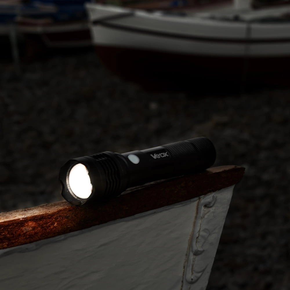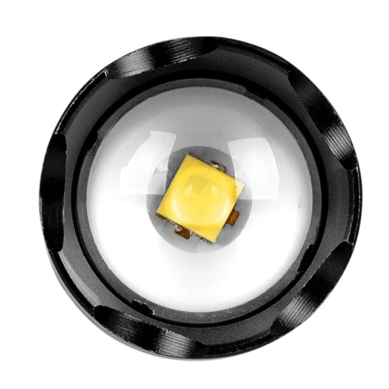 Die taktische Taschenlampe VA0116 ist mit einer 10-Watt-XHP50-LED ausgestattet, die für eine Lebensdauer von bis zu 100.000 Stunden ausgelegt ist. Die Ausrüstung bietet einen Lichtstrom von 800 Lumen, so dass sie in den Händen von Überlebenskünstlern, Wachleuten oder Jägern sehr gut funktioniert. Sie ist auch zu Hause bei einem unerwarteten Stromausfall nützlich. Effektive Reichweite bei 100 % Leistung bis zu 500 Meter. Der Kopf ist für beste Wärmeableitung ausgelegt