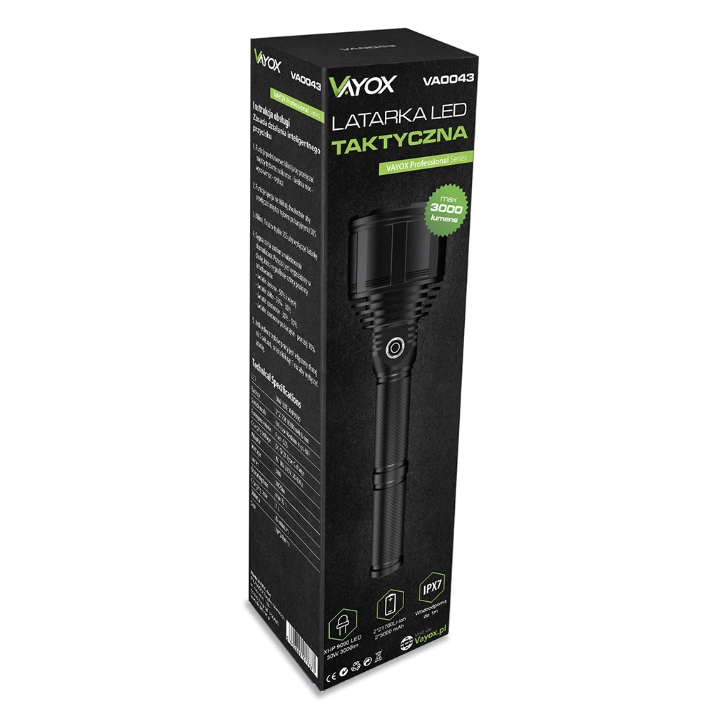 Taktische Taschenlampe 30W 3000lm VAYOX VA0043 Produktmerkmale