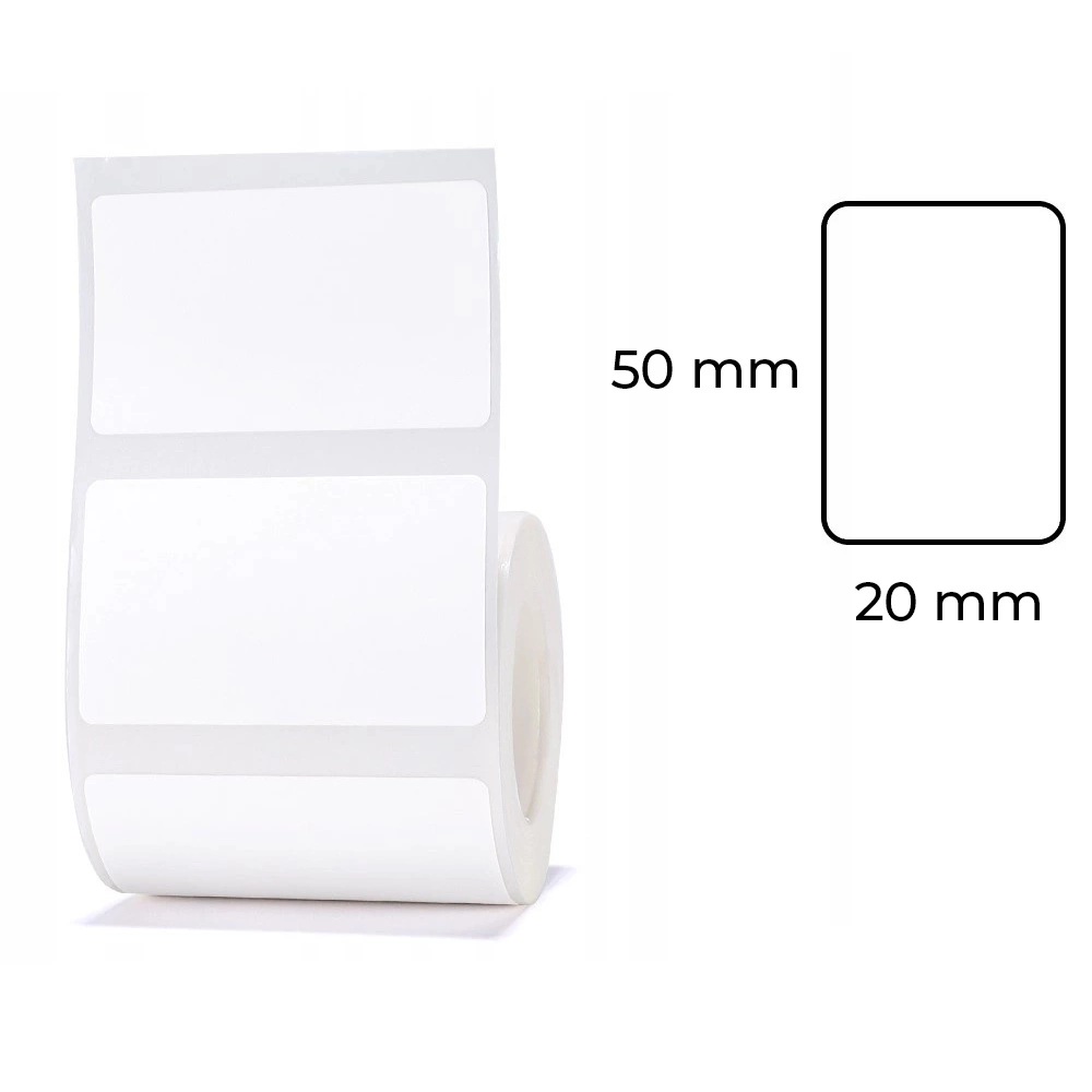 Etykiety do drukarek Niimbot z serii B w kolorze białym. Na rolce znajduje się 320 sztuk w rozmiarze 50x20mm. Etykiety w pozycji horyzontalnej (poziomej).