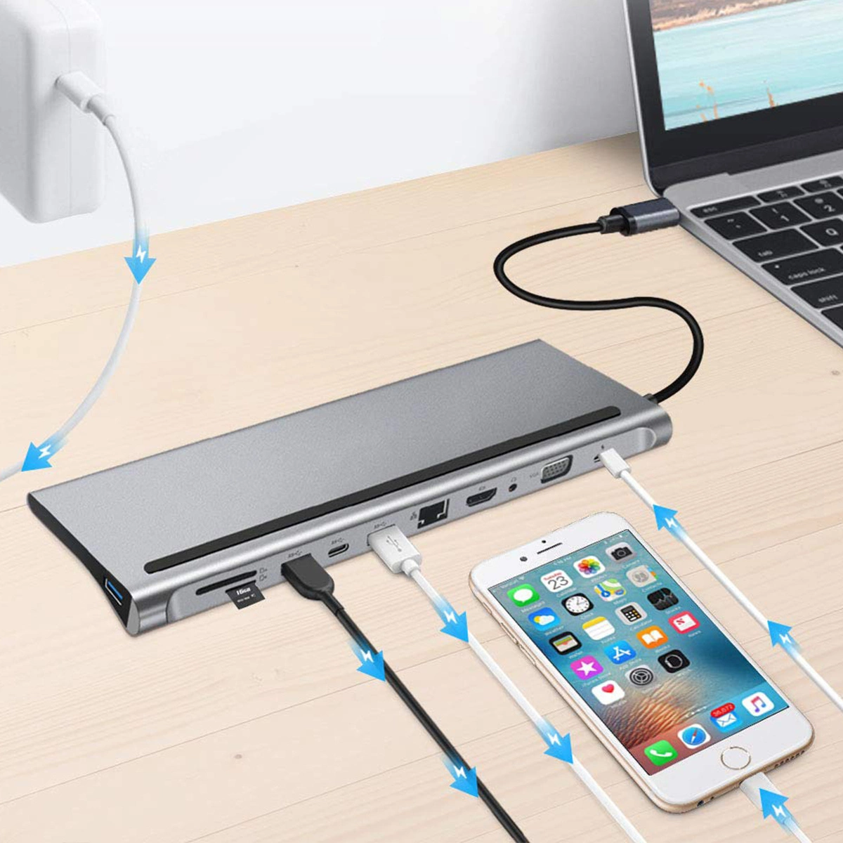 -3x USB Buchse - 1x USB-C Buchse - 1x HDMI Buchse - 2x SD / TF Kartenleser - 1x VGA Buchse - 1x 3,5mm Klinkenbuchse - 1x RJ45 BuchseSpezifikation: