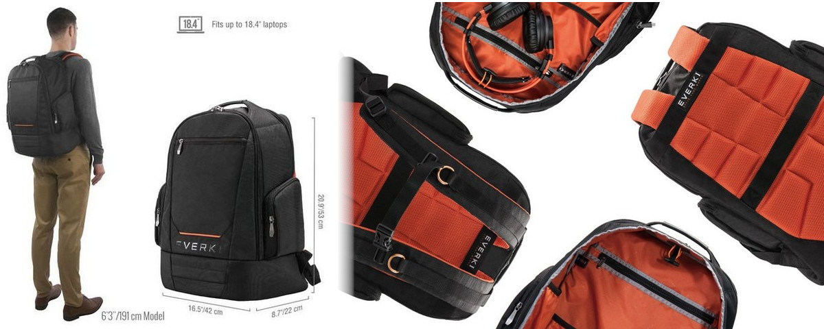 Plecak EVERKI ContemPRO z serii PREMIUM zaprojektowany specjalnie dla życia zawodowego. Dzięki stylowemu, czarnemu wyglądowi i gustownemu designowi pasuje on doskonale zarówno do sali narad, jak też i do środków transportu publicznego w drodze do biura. W sytuacjach, w których noszenie plecaka wydaje się być niewłaściwym lub nieodpowiednim, dwa uchwyty skórzane umożliwiają jego noszenie jak aktówki. Plecak utrzymany w kolorystyce marki, zawiera pomarańczowe akcenty.