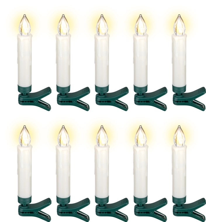 Nowość w okresie przedświątecznym. Goobay wprowadza świeczki choinkowe LED do swojej gamy produktów. Sprzedawane w zestawie po 10 sztuk wraz z pilotem zdalnego sterowania. Montaż do gałązek choinki za pomocą klipsów/zacisków. Świeczki w kolorze białym, klips zielony. Zasilane z baterii AAA (1x).