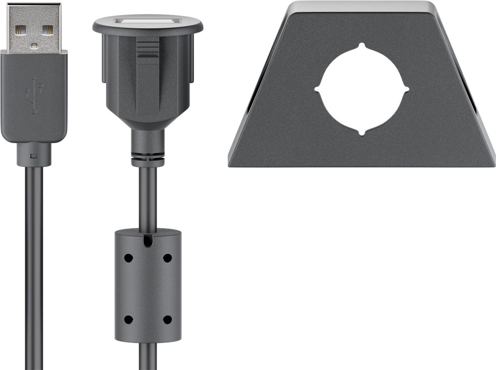 Przedłużacz USB 2.0 z dedykowanym uchwytem montażowym, pozwala osadzić na stałe gniazdo USB gdy dostęp do gniazda np. w komputerze/samochodzie jest utrudniony.