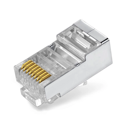 • High quality RJ45 straight-through connector. RJ45 category 5 (CAT5E) plug in transparent color, shielded (FTP). Metal housing. Price is for 100 pieces in a tasteful package.