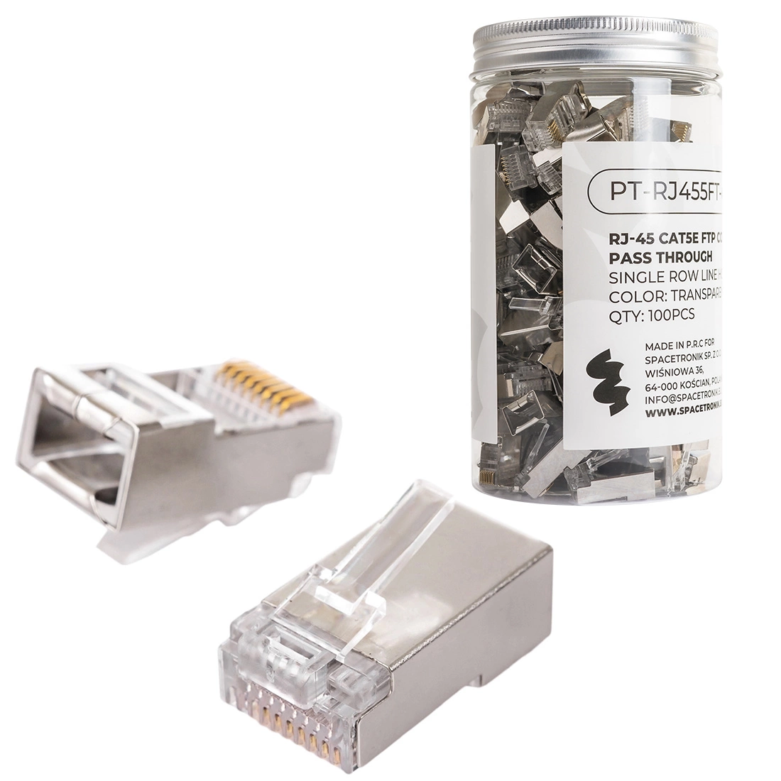 Wtyk RJ45 przelotowy CAT5E FTP Spacetronik Pass Through (transparent) - 100 szt.