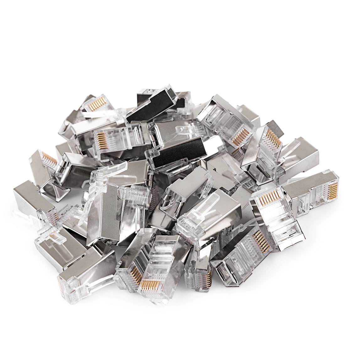 Zestaw 25 szt. standardowych ośmiostykowych wtyczek RJ45 przystosowanych do zarabiania kabli teleinformatycznych LAN typu "skrętka". Końcówka rj45 jest uniwersalna - można ją stosować zarówno do kabli z żyłami z drutu, jak i linki.Piny wykonane z czystej miedzi ze stykami pokrytymi złotem, co zapewnia doskonałe przewodnictwo. Produkt wykonany w najnowszej technologii z wysokiej jakości materiałów. Zapewniają skuteczne połączenia kabli z gniazdami typu RJ45.